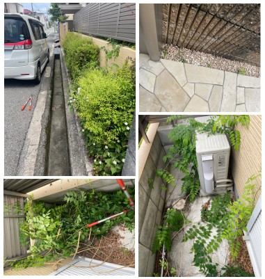 伊丹にあります物件2つの剪定・除草作業を行いました。