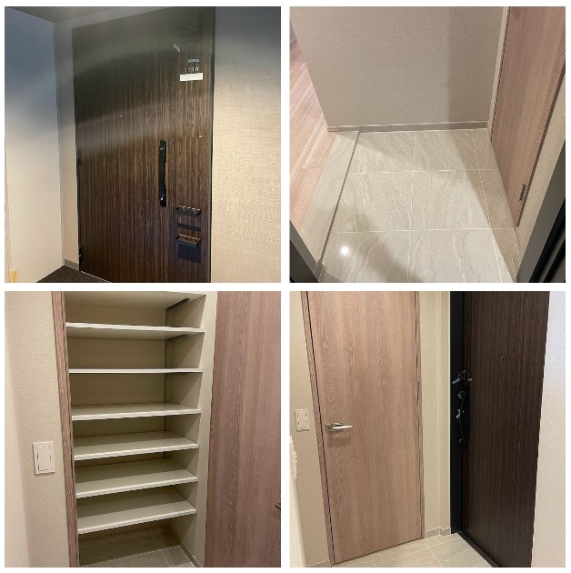 玄関扉は重厚感のある扉で玄関は白く明るい清潔感のある玄関です。